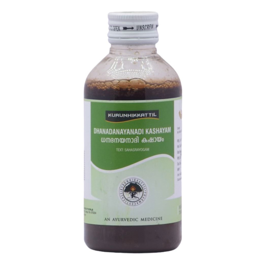 Dhanadanayanadi Kashayam is a traditional Ayurvedic decoction mainly used in the management of eye-related disorders and associated headaches. It helps in reducing eye strain, redness, burning sensation, and improves overall vision health. This formulation is also beneficial in balancing aggravated Pitta dosha, which is commonly linked with eye problems and inflammation.It is often prescribed for conditions like conjunctivitis, eye irritation, blurred vision, and headaches caused by excessive heat or strain. Regular use supports eye nourishment, cooling effect, and promotes clarity of vision.